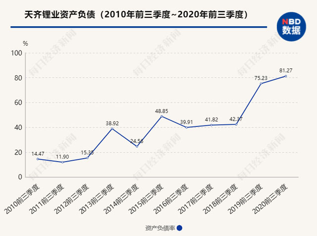 當時,銀團也表示將天齊鋰業(yè)應償還的貸款展期。12月9日接受調(diào)研時,董事長蔣衛(wèi)平曾說,通過這次交易,公司的資產(chǎn)負債率將從81%下降至約63%。