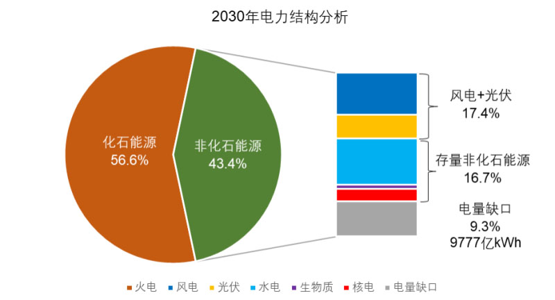 圖1 2030年中國(guó)電力結(jié)構(gòu)測(cè)算分析