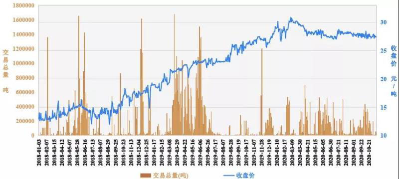 圖2 廣東碳交易二級市場交易總量及收盤價趨勢圖