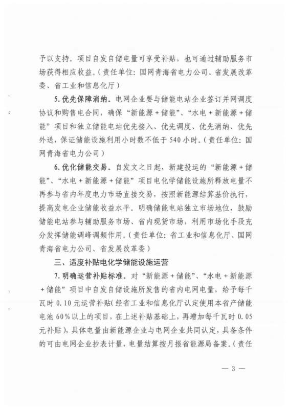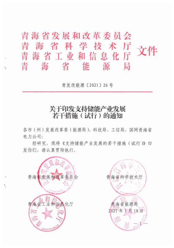 中國儲能網(wǎng)訊:1月18日,青海省發(fā)改委、科技廳、工信廳、能源局聯(lián)合下發(fā)《關(guān)于印發(fā)支持儲能產(chǎn)業(yè)發(fā)展若干措施(試行)的通知》,對"新能源+儲能” 、"水電+新能源 + 儲能”項目中自發(fā)自儲設(shè)施所發(fā)售的省內(nèi)電網(wǎng)電量,給予每千瓦時0.10元運營補貼,如果經(jīng)省工業(yè)和信息化廳認(rèn)定使用本省產(chǎn)儲能電池60%以上的項目,在上述補貼基礎(chǔ)上,再增加每千瓦時0.05元補貼。