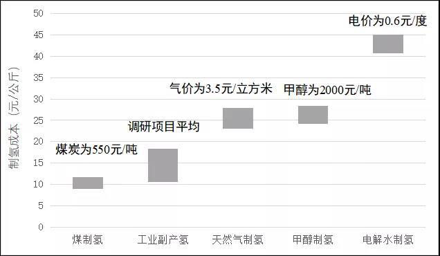 圖2:不同制氫工藝的氫氣生產(chǎn)成本對(duì)比