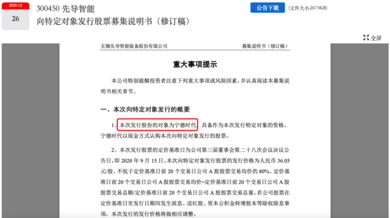 去年8月份,寧德時代表示要拿出191億元投資境內(nèi)外產(chǎn)業(yè)鏈上下游優(yōu)質(zhì)上市企業(yè)。一個月后,先導(dǎo)智能發(fā)布公告稱,擬通過定增募資不超25億元,寧德時代擬認購全部定增股份。認購后寧德時代將占據(jù)7.29%的股本占比,成為先導(dǎo)智能的第二大股東。