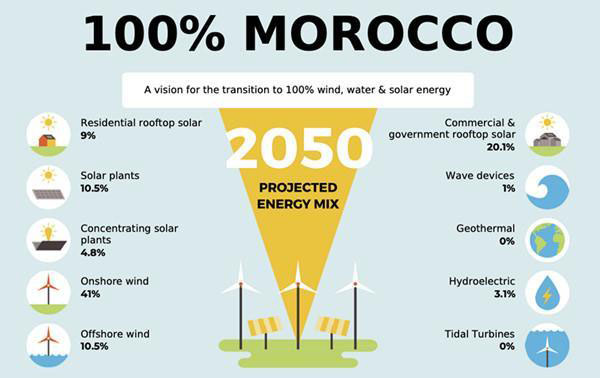 摩洛哥計劃到2030年實現(xiàn)可再生能源滿足50%電力需求,到2050年要實現(xiàn)100%滿足電力需求。