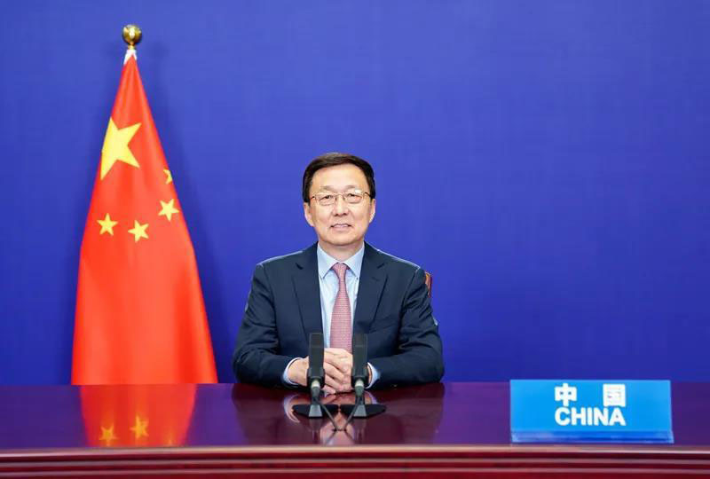 1月25日,中共中央政治局常委、國(guó)務(wù)院副總理韓正在北京以視頻方式出席首屆氣候適應(yīng)峰會(huì)并發(fā)表致辭。新華社記者 殷博古 攝