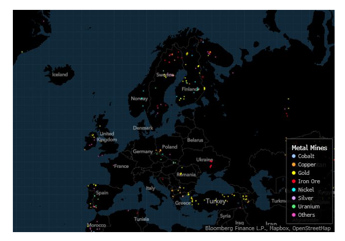 芬蘭和瑞典擁有一些歐洲最豐富的礦藏。數(shù)據(jù)由彭博社匯編 ▼