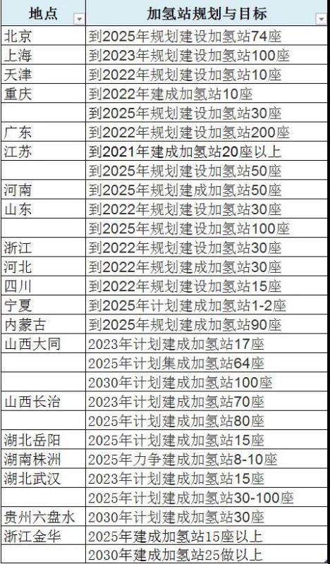 部分省份及市級(jí)加氫站建設(shè)規(guī)劃
