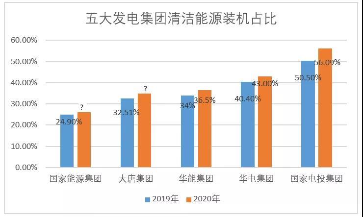 截至2020年,華電集團(tuán)清潔能源裝機(jī)占比為43%,僅次于國(guó)家電投的56.09%,也是五大發(fā)電集團(tuán)中第二家超過(guò)40%的企業(yè)。