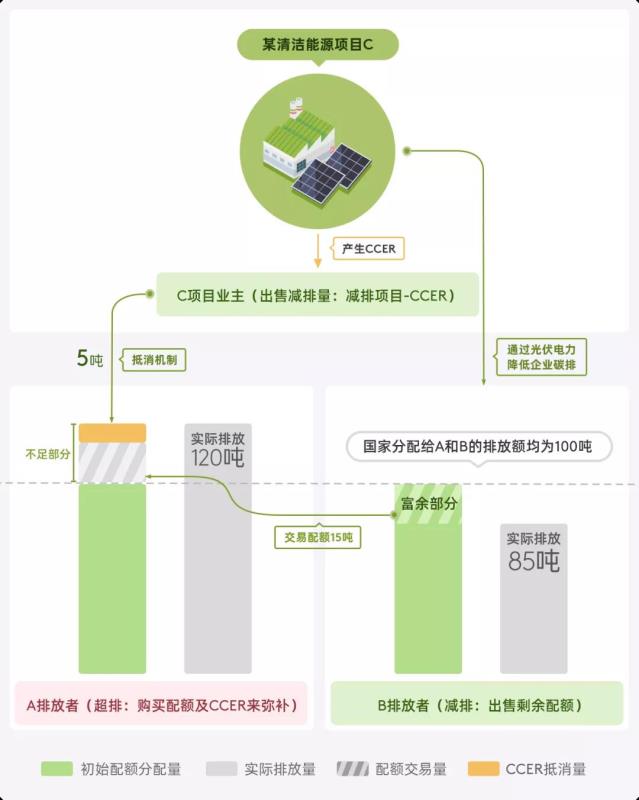CCER是指由發(fā)改委審定,并在國家注冊登記系統(tǒng)中登記的溫室氣體自愿減排量,簡稱CCER。CCER主要來自于通過清潔能源代替化石燃煤等所產(chǎn)生的減排量,CCER可與碳配額等量互換,控排企業(yè)可購買CCER用于碳履約,滿足其控排要求。