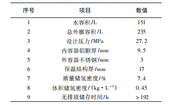 表3GM氫動(dòng)一號(hào)液氫氣瓶參數(shù)