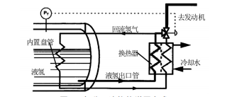 由于液氫存儲(chǔ)于低溫液體狀態(tài),需要經(jīng)過(guò)相變、溫度調(diào)整、壓力調(diào)整等步驟,氫氣才能供動(dòng)力裝置使用,因而對(duì)各參數(shù)的實(shí)現(xiàn)較其他儲(chǔ)氫方式要復(fù)雜一些。供氣壓力的控制是液氫儲(chǔ)存系統(tǒng)的核心技術(shù)之一,在液氫系統(tǒng)的發(fā)展歷程中,形成了多種系統(tǒng)增壓方式。