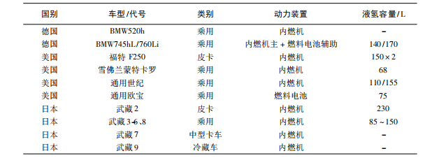 表1 部分采用液氫供氣系統(tǒng)的車型情況