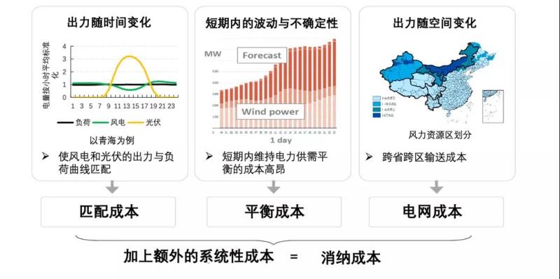 中國人民大學(xué)應(yīng)用經(jīng)濟(jì)學(xué)院副教授宋楓總結(jié),新能源的出力特性和負(fù)荷特性匹配度不高、自身的波動(dòng)性,以及中國新能源資源稟賦和需求的空間差異,導(dǎo)致新能源在消納時(shí)還要考慮匹配成本、平衡成本和電網(wǎng)建設(shè)成本,這些成本加上額外的系統(tǒng)性成本,構(gòu)成了新能源的消納成本。