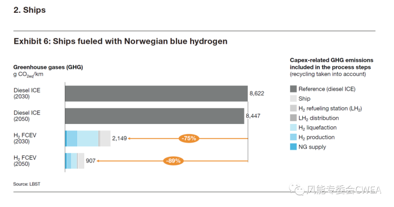 報告探索了八種示例性途徑,分析表明,如果使用氫,則可以顯著減少溫室氣體的排放。比傳統(tǒng)的化石能源減排多達(dá)60-90%。