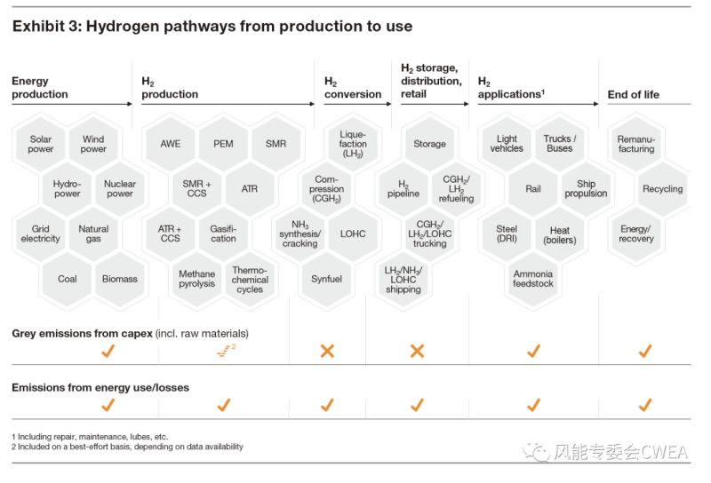 從生產(chǎn)到使用的氫能路徑,6個過程各種具體形式