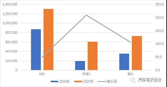 根據(jù)ACEA發(fā)布的數(shù)據(jù),去年歐洲的HEV、PHEV和BEV增長都很迅速,HEV從873,540增長到1,305,020臺,同比增長49.4%;PHEV從196,576增長到了608,833,同比增長 209.7%,這個細分市場在2021年估計要繼續(xù)加速。BEV從353,684快速提升到728,602,增長率為106.0%。對比中國的情況來看,歐洲的PHEV已經(jīng)遠遠甩過中國了,2020年國內(nèi)的數(shù)據(jù)只有24.7萬,由于中國早一步進行退坡,所以目前從規(guī)模來看,國內(nèi)的PHEV電芯從規(guī)模暫時沒有很大的優(yōu)勢。