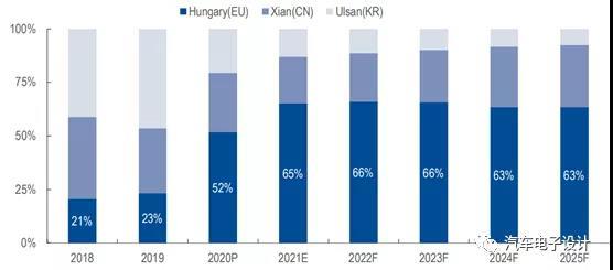 我的理解,相對LG Chem和SKI,SDI在BEV上面的投入并沒有很堅決,目前現(xiàn)有的歐洲客戶主要包括BMW、奧迪和菲亞特,主體的定位還是圍繞PHEV來布局。在過去幾年最正確的是比較早的在歐洲實現(xiàn)擴產(chǎn),應對歐洲客戶的需求,但是由于方殼BEV在國內(nèi)企業(yè)快速降本的路徑下,跟隨沒有那么積極,使得整體的價格優(yōu)勢變?yōu)閮r格劣勢。從技術路線的選擇上,不選NCM811而是選擇在大電芯上做NCA的策略,從現(xiàn)在來看也沒錯,不過確實錯過了一個BEV需求的窗口期。所以目前SDI在韓國工廠的占比被壓縮到了一個很低的比例,在歐洲逐步迭代Gen5的BEV電池使得SDI大部分完全給歐洲供