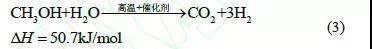 甲醇水蒸氣重整制氫,即甲醇和水在一定溫度、壓力和催化劑作用下轉(zhuǎn)化生成氫氣、二氧化碳以及少量一氧化碳和甲烷的混合氣體,該方法產(chǎn)物中氫氣體積分?jǐn)?shù)是甲醇制氫法中最高的。甲醇水蒸氣重整制氫具有反應(yīng)溫度低、產(chǎn)物氫氣體積分?jǐn)?shù)高、一氧化碳體積分?jǐn)?shù)(<2%)較甲醇分解制氫法低等優(yōu)點(diǎn)。因此,目前開(kāi)發(fā)的甲醇制氫技術(shù)主要采用甲醇水蒸氣重整制氫工藝,其反應(yīng)機(jī)理見(jiàn)式(3),工藝流程如圖4所示。甲醇水蒸汽重整制氫裝置已經(jīng)廣泛用于航空航天、精細(xì)化工、制藥、小型石化、特種玻璃、特種鋼鐵等行業(yè)。