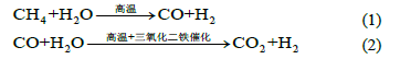 天然氣制氫技術(shù)中,蒸汽重整制氫較為成熟, 是國(guó)外主流制氫方式。其原理是:先對(duì)天然氣進(jìn)行預(yù)處理,甲烷和水蒸汽在轉(zhuǎn)化爐中反應(yīng)生成一氧化碳和氫氣等;經(jīng)余熱回收后,在變換塔中,一氧化碳和水蒸氣反應(yīng)生成二氧化碳和氫氣。該技術(shù)是在天然氣蒸汽轉(zhuǎn)化技術(shù)的基礎(chǔ)上實(shí)現(xiàn)的。在變換塔中,在催化劑存在的條件下,控制反應(yīng)溫度, 轉(zhuǎn)化氣中的一氧化碳和水反應(yīng),生成氫氣和二氧化碳。主要反應(yīng)式為
