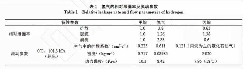 早在90年代,就有科學家研究了氫氣的泄漏特性,表1列出了氫氣的相對泄漏率及流動參數(shù)。氫氣比其他燃料或氣體泄漏速率更快:在層流狀態(tài)下,氫氣的泄漏速率約為甲烷的1.26倍,而在高壓下,氫氣往往處于湍流狀態(tài),此時它的泄漏速率更快,約為甲烷的2.83倍。另外,氫氣極易擴散,其在薄膜中的擴散速度約為甲烷的3.8倍。在非受限空間內,一旦發(fā)生意外泄漏,由于氫氣密度比空氣低,會迅速上浮并向四周擴散。而在受限空間,泄漏的氫氣易于在局部聚積,由于其高擴散性,能夠快速形成危險的可燃性混合物。