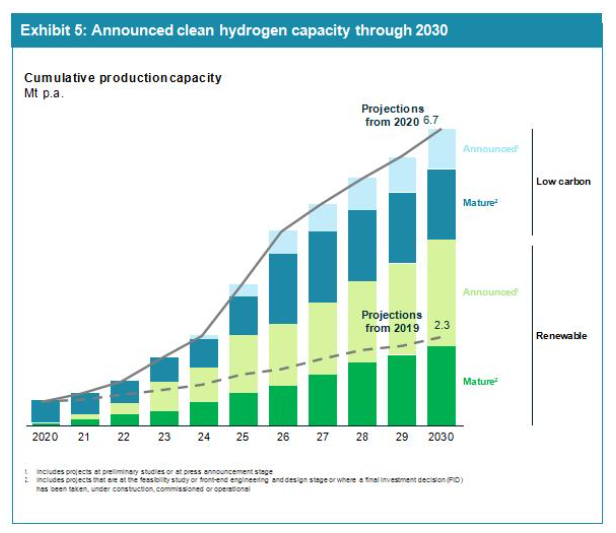 在政府財政和監(jiān)管的支持下,全球向脫碳方向的轉(zhuǎn)變正支撐這一勢頭發(fā)展。國內(nèi)生產(chǎn)總值占據(jù)世界一半以上的75個國家有零碳發(fā)展目標(biāo),30個有氫能規(guī)劃。