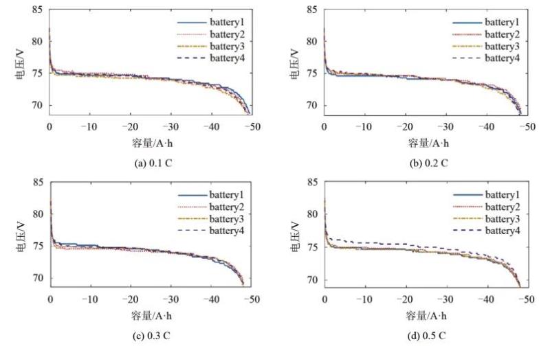 在不同倍率下對電池組進(jìn)行多個循環(huán)周期的恒功率充放電,利用電池管理系統(tǒng)記錄每組中各個電池包的放電容量及電壓值,得到電池的CD-OCV曲線,根據(jù)曲線的離散情況對電池成組配組情況進(jìn)行驗(yàn)證。
