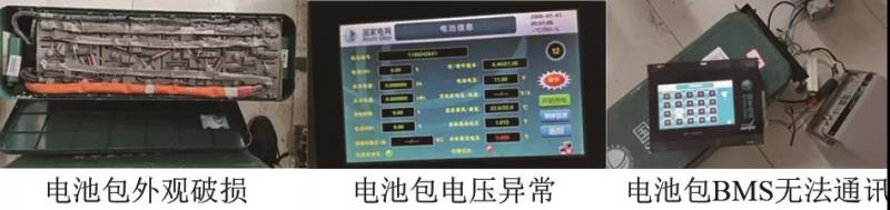 從電池包的外觀、銘牌、開路電壓、BMS通訊等方面對電池包進(jìn)行初選,對外觀有缺陷、銘牌信息缺失、開路電壓超出額定充電截止電壓的80%~110%范圍、BMS無法正常通訊的電池包予以剔除。經(jīng)檢測,在80個電池包當(dāng)中存在3個電池包外觀有破損,4個電池包開路電壓超出額定充電截止電壓的80%~110%,1個電池包BMS無法通訊的情況,沒有通過初選,剩下72個電池包進(jìn)入到二次篩選環(huán)節(jié)。電池包初選不合格情況如圖2所示。