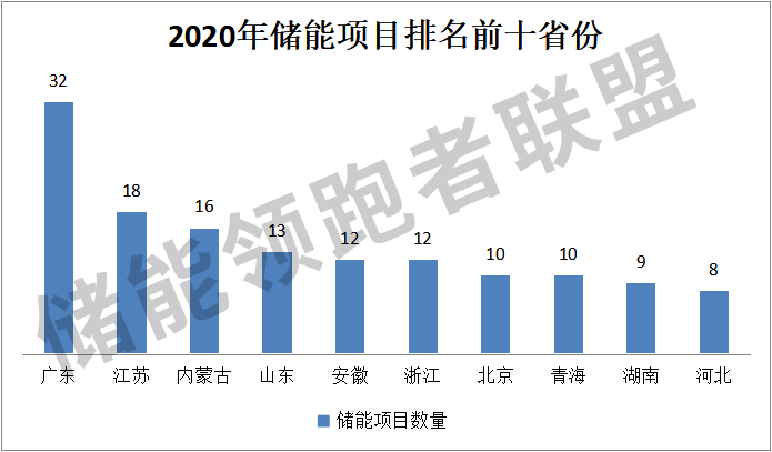 中國儲能網(wǎng)訊:2020年,隨著3060碳達(dá)峰和碳中和目標(biāo)的提出,我國電力去碳化、清潔化進(jìn)程將再次提速,包括儲能在內(nèi)的新能源行業(yè)進(jìn)入發(fā)展“快車道”。作為風(fēng)電、光伏平價時代高比例消納可再生能源的關(guān)鍵支撐和削峰填谷保障并網(wǎng)安全的必要保障,儲能在促進(jìn)全球電力低碳轉(zhuǎn)型進(jìn)程中不可或缺。相信在“十四五”期間,儲能行業(yè)將迎來商業(yè)化、規(guī)模化的重要發(fā)展窗口期。據(jù)EESA統(tǒng)計,2020年共有193個儲能項目有動態(tài)更新(處于施工安裝、竣工驗(yàn)收階段),規(guī)??傆嫗?604.093MW / 5825.966MWh。其中排名前十的省份分別是廣東省、江蘇省、內(nèi)蒙古、山東省、安徽省、浙江省、北京市、青海省、湖南省、河北省。廣東省作為2020年的儲能大省,儲能項目共32個,位居中國第一。