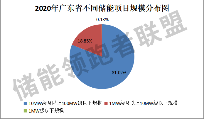 2020年廣東省不同儲能項目規(guī)模分布圖: