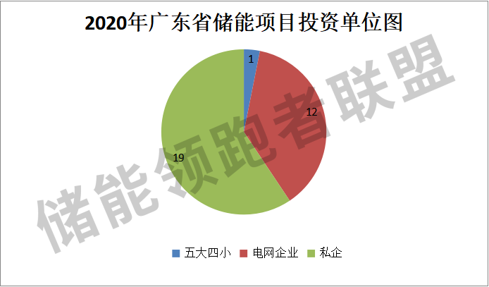 在2020年廣東省的32儲能項目中,五大四小集團(tuán)只有1個項目分布在廣東省,即華電集團(tuán)——廣東華電韶關(guān)熱電有限公司投資的廣東韶關(guān)雄州電廠10MW/10MWh儲能系統(tǒng)項目,其余的31項目都是由電網(wǎng)企業(yè)和私企投資的,電網(wǎng)企業(yè)占12個,私企占19個。