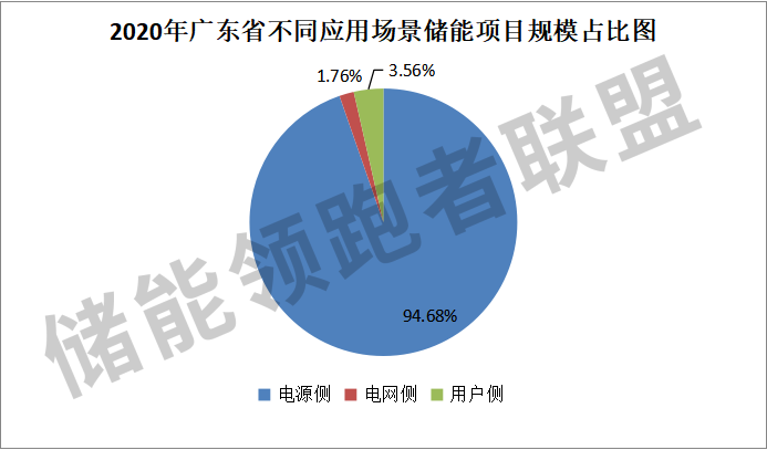 2020年廣東省不同應(yīng)用場景儲能項目規(guī)模占比圖: