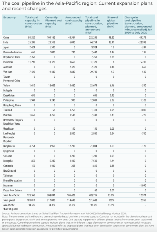 根據亞太經濟社會理事會發(fā)表“亞太地區(qū)退煤報告”,目前亞太地區(qū)計劃和宣布興建的燃煤電廠占全球擬建燃煤發(fā)電廠的94%,總裝機約522吉瓦。