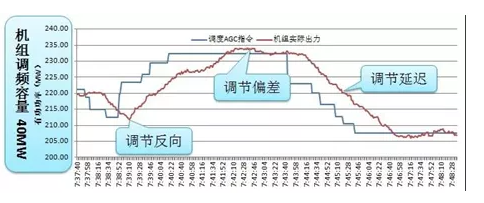 火電機組需要磨煤、燃燒的過程,能量轉(zhuǎn)換時間較長,存在調(diào)節(jié)速率慢、折返延遲和誤差大的缺點。具體表現(xiàn)為調(diào)節(jié)的延遲、偏差(超調(diào)和欠調(diào))等現(xiàn)象,如圖: