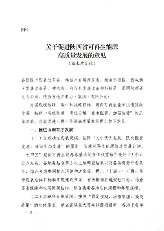 中國(guó)儲(chǔ)能網(wǎng)訊:3月10日,陜西省能源局印發(fā)《關(guān)于促進(jìn)陜西省可再生能源高質(zhì)量發(fā)展的意見》(征求意見稿),就碳達(dá)峰、碳中和目標(biāo)下,高質(zhì)量促進(jìn)可再生能源發(fā)展提出指導(dǎo)性意見。