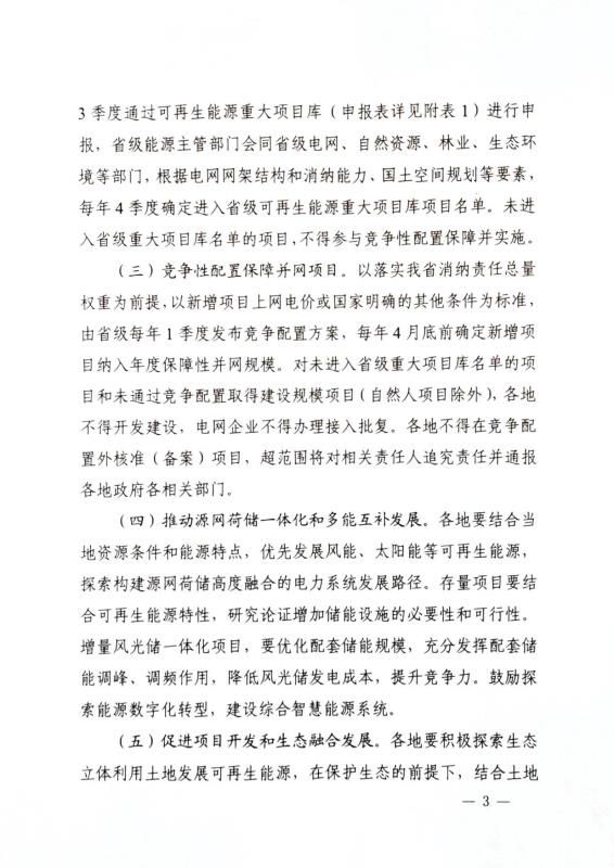 為了有序推動(dòng)光伏電站項(xiàng)目開發(fā)進(jìn)度,完成年度非水消納責(zé)任權(quán)重,陜西明確要求建立省級(jí)重大可再能源項(xiàng)目庫(kù),每年3季度進(jìn)行申報(bào),4季度確定項(xiàng)目名單,1季度發(fā)布競(jìng)爭(zhēng)配置方案,4月底前確定當(dāng)年新增項(xiàng)目納入年度保障性并網(wǎng)規(guī)模。未進(jìn)入項(xiàng)目庫(kù)或未通過競(jìng)爭(zhēng)配置取得建設(shè)規(guī)模的項(xiàng)目不得建設(shè)。