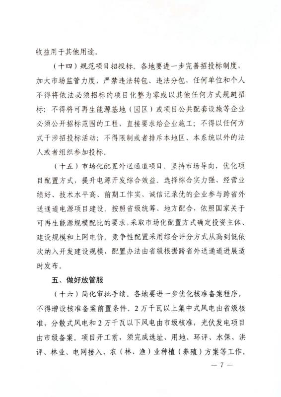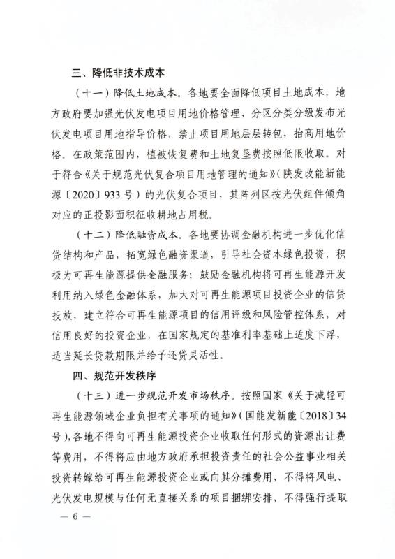 另一方面,為了規(guī)范開發(fā)秩序、降低非技術(shù)成本,文件提出要在土地成本、融資成本方面提出了政策保障,并且明確指出不得向可再生能源投資企業(yè)收取任何形式的資源出讓費(fèi),不得轉(zhuǎn)嫁或者分?jǐn)傎M(fèi)用,不得進(jìn)行項(xiàng)目捆綁等保障項(xiàng)目投資的相對(duì)公平。