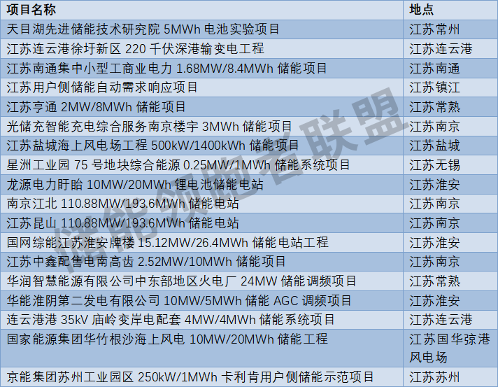 據(jù)EESA不完全統(tǒng)計,2020年江蘇省共有18個儲能項目,位居中國第二。