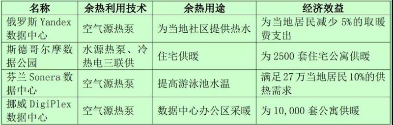 表1 國外數(shù)據(jù)中心余熱利用典型案例