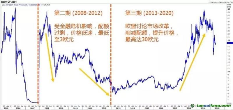 【圖】削減配額,提升價(jià)格是碳排放的趨勢(shì)(Refinitiv Eikon, ICE洲際交易所)
