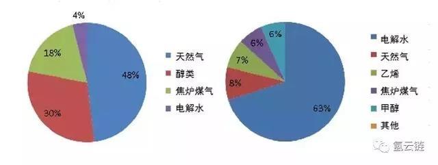 【圖】全球和日本(右側(cè))氫能生產(chǎn)途徑比例(圖片來源:氫云鏈)