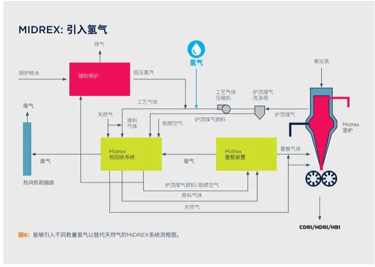 完全使用氫氣目前還面臨諸多挑戰(zhàn),因此部分使用氫氣也是一種替代方案。在MIDREX的設(shè)計(jì)方案中,氫氣占到還原劑的80%,其余氣體原料為天然氣,因此該設(shè)計(jì)方案下依然會(huì)有部分二氧化碳排出。本文一開頭所言的河鋼裝置,采用的就是部分氫氣的路線。