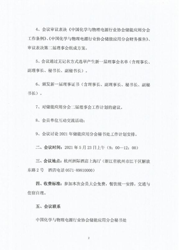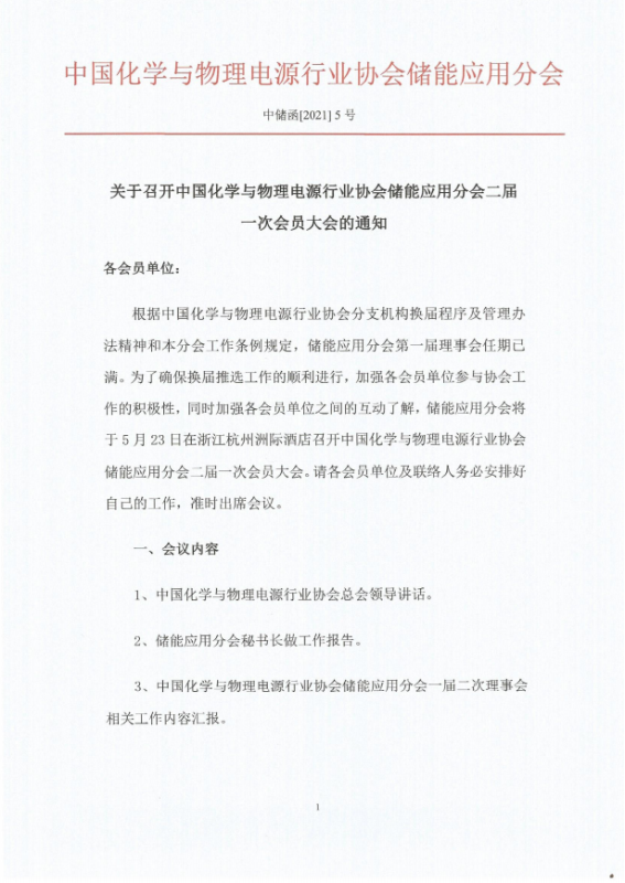 關于召開中國化學與物理電源行業(yè)協(xié)會儲能應用分會二屆一次會員大會的通知