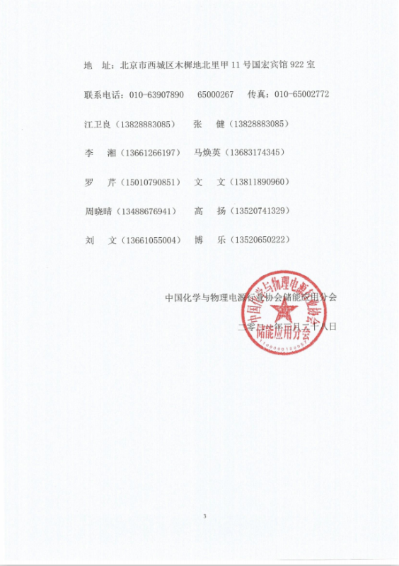 中國化學與物理電源行業(yè)協(xié)會儲能應用分會秘書處