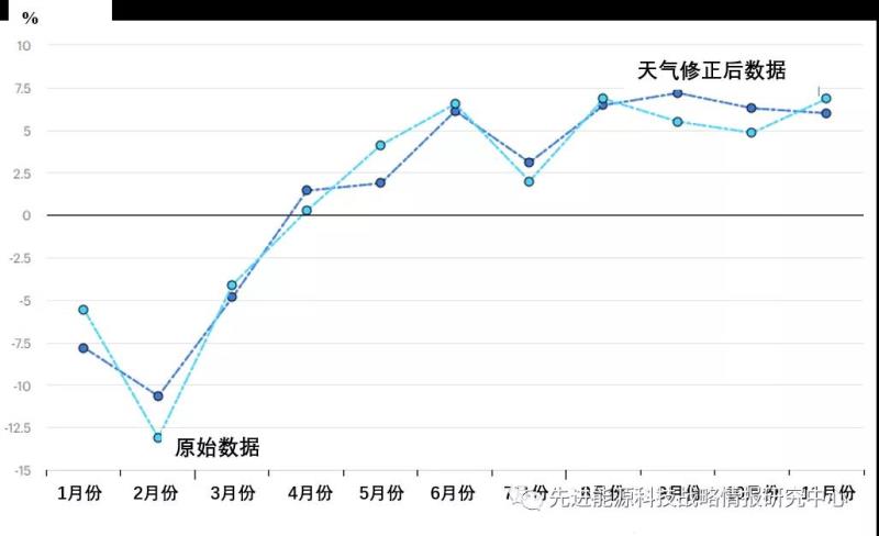 受疫情和封控措施的實(shí)施,中國(guó)2020年1月電力需求呈現(xiàn)下降趨勢(shì),2月份降幅更大(經(jīng)閏年修正后,較2019年同期下降13%)。由于2020年2月份氣溫高于2019年同期,經(jīng)天氣修正后,2020年2月電力需求仍較2019年同期水平下降11%。隨著疫情好轉(zhuǎn),封控措施的放松,中國(guó)電力需求呈現(xiàn)復(fù)蘇跡象。到2020年4月,中國(guó)電力需求完全恢復(fù)至疫情前水平。8月,經(jīng)天氣修正后,電力需求較2019年同期水平增長(zhǎng)了6%。具體變化如圖2所示。