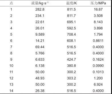 基于上述各子系統(tǒng)的主要技術(shù)參數(shù)建立新型耦合系統(tǒng)的計算模型,模擬得出新型集成系統(tǒng)在各個抽汽點和主要點處的蒸汽參數(shù),將其列在表4中。