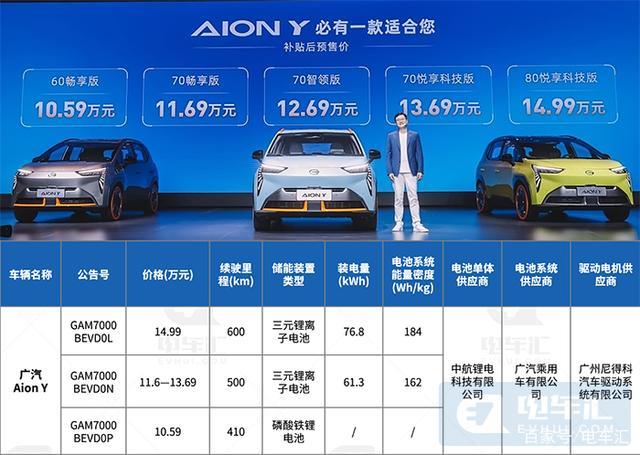 新上車型方面,3月29日廣汽發(fā)布了使用彈匣電池系統(tǒng)安全技術的AION Y,目前其500km和600km續(xù)航版本車型已經進入推薦目錄,對應售價11.69-13.69萬和14.99萬元;而續(xù)航410km售價10.59萬的磷酸鐵鋰電池版車型則剛進入342批公示目錄,預計之后進入第3批推薦目錄。這也是廣汽埃安首次使用磷酸鐵鋰電池,供應商同樣是中航鋰電。新車入門版本采用磷酸鐵鋰電池,從而進一步降低售價,這大概率會成為未來的趨勢。