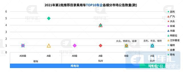 本批目錄的新能源乘用車中,純電動車型23款(占比88%),插電式車型3款。公告車型分布上,純電動A級轎車占比最高達34.6%,其次為純電動A級SUV占比23.1%。