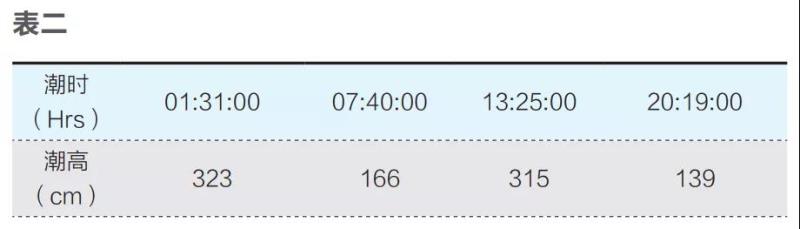 海上電站建設地點為岸線近海,包括大陸岸線及海島岸線近海,海上電站建設地點以海深超過最低潮位1-2m即可,即在最低潮時不露出海底仍有正常海浪起伏,例如浙江舟山沈家門2021年2月19日潮汐情況(表二)。實際建設中潮汐要以全年最大潮汐潮位為依據(jù),按此推算,海上電站建設海深按平潮最大不超過8m,較海上風電場建設海深5-50m比較海深較淺。