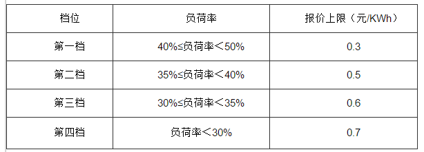 四、調(diào)整和細(xì)化電力深度調(diào)峰交易“階梯式”負(fù)荷率和報(bào)價(jià),具體分檔和報(bào)價(jià)上限見下表: