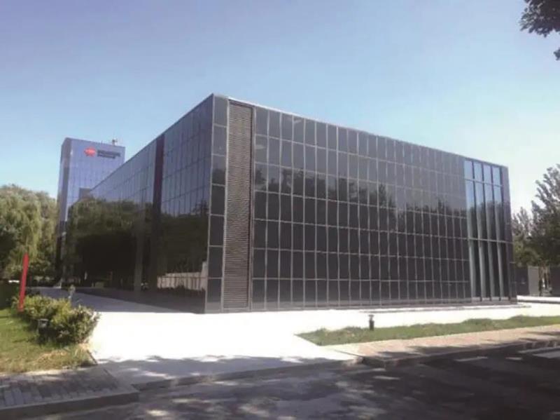 該建筑是光伏建筑一體化技術(shù)和低壓直流供電技術(shù)的研究、實(shí)驗(yàn)及綜合示范項(xiàng)目,位于北京市昌平區(qū)。立面幕墻和屋面安裝銅銦鎵硒薄膜光伏組件,裝機(jī)容量112.6 kWp,使用PVSyst軟件預(yù)測(cè)首年發(fā)電量約7.5萬(wàn)千瓦時(shí)。建筑建成后外觀如圖1所示。