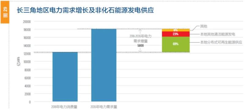 圖29 長三角地區(qū)電力需求增長及非化石能源發(fā)電供應(yīng)
